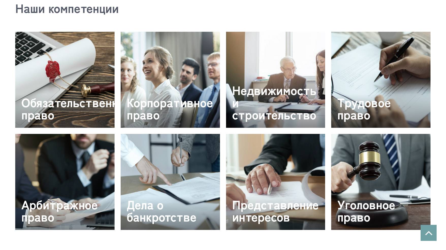 - Интегрировали детальное описание каждого направления: арбитраж, банкротство, частные клиенты, уголовное право
